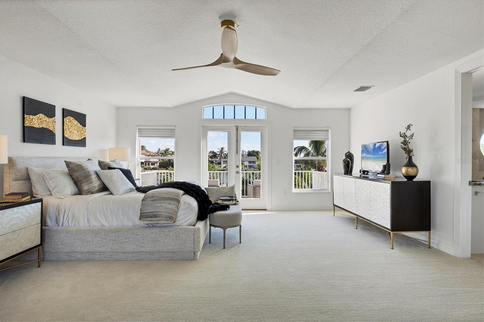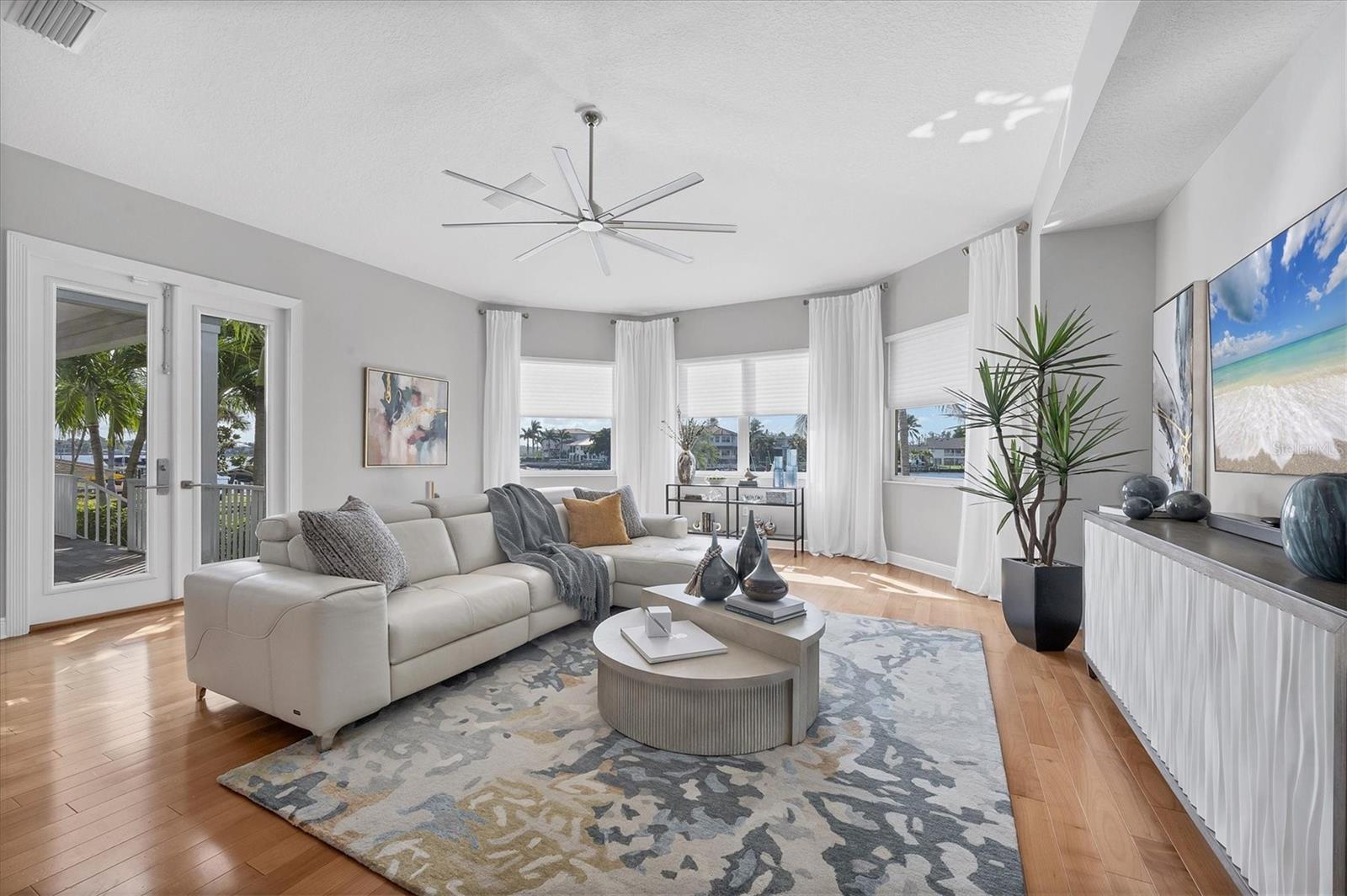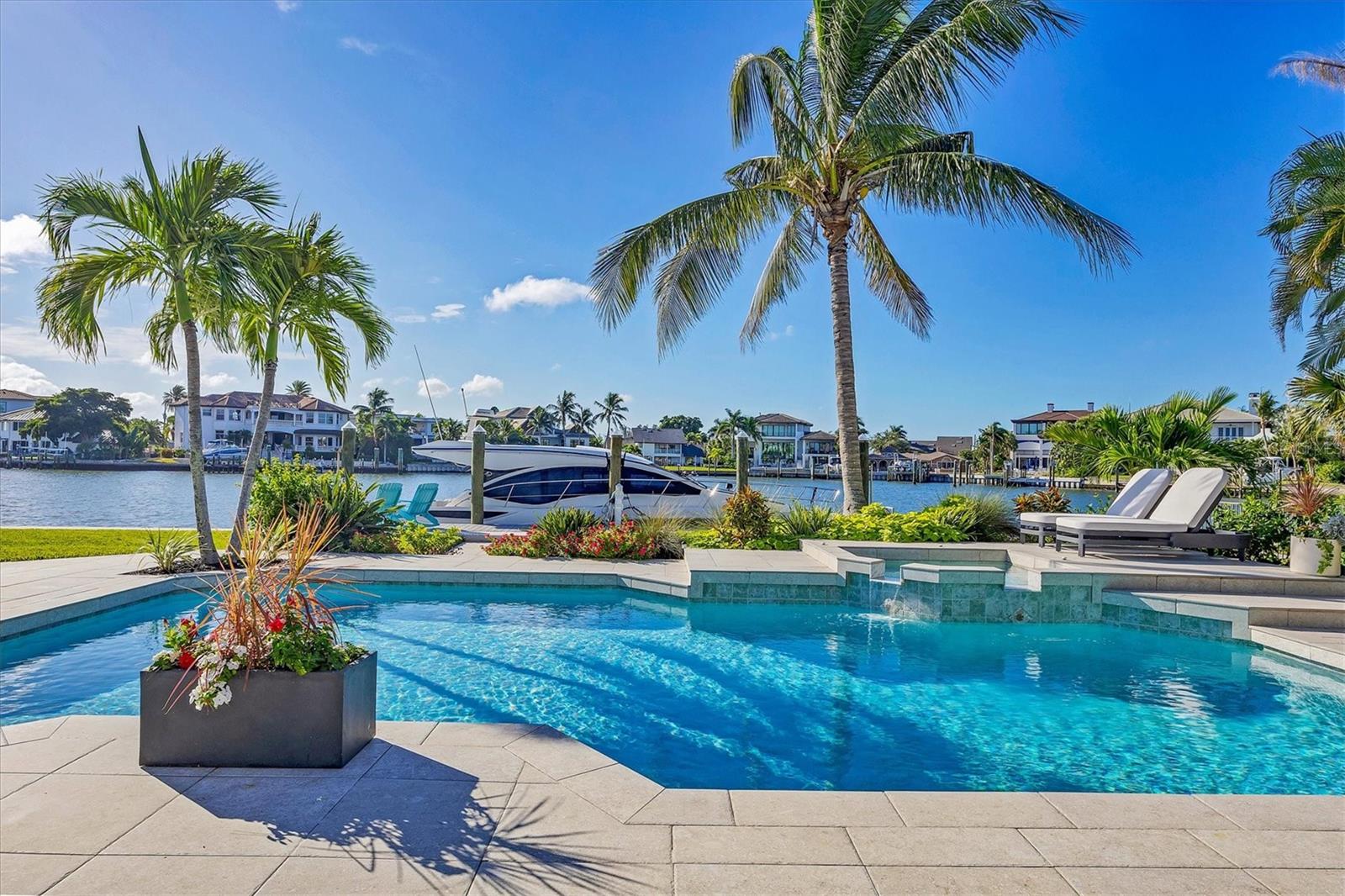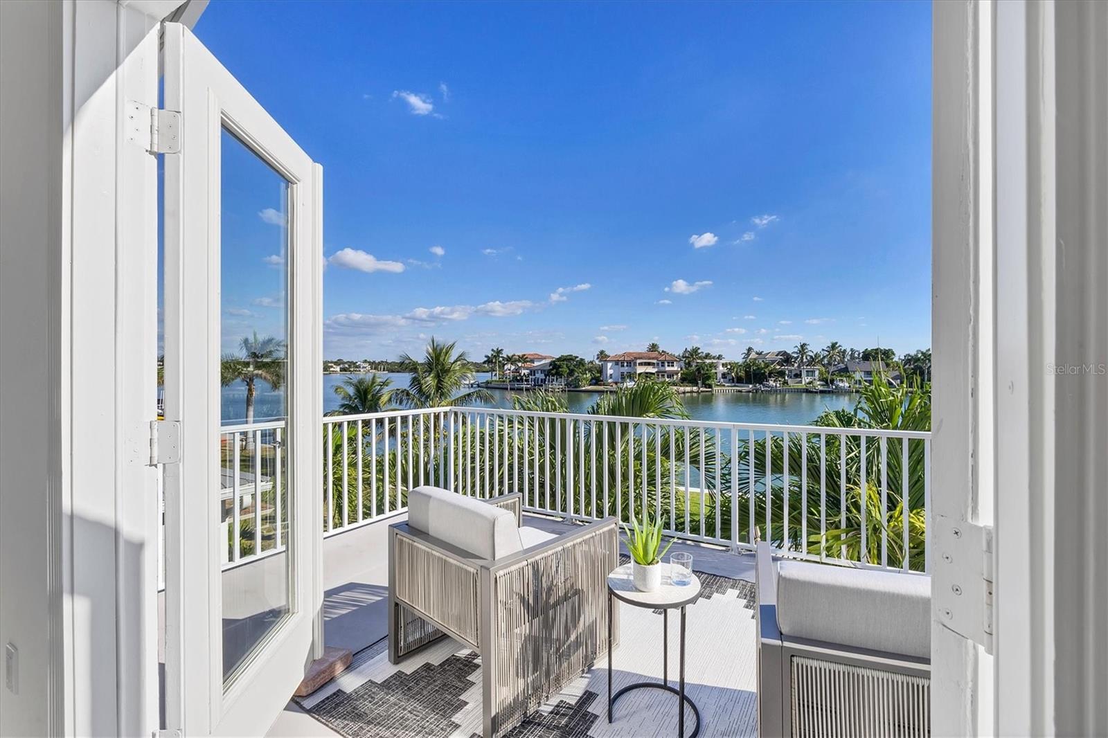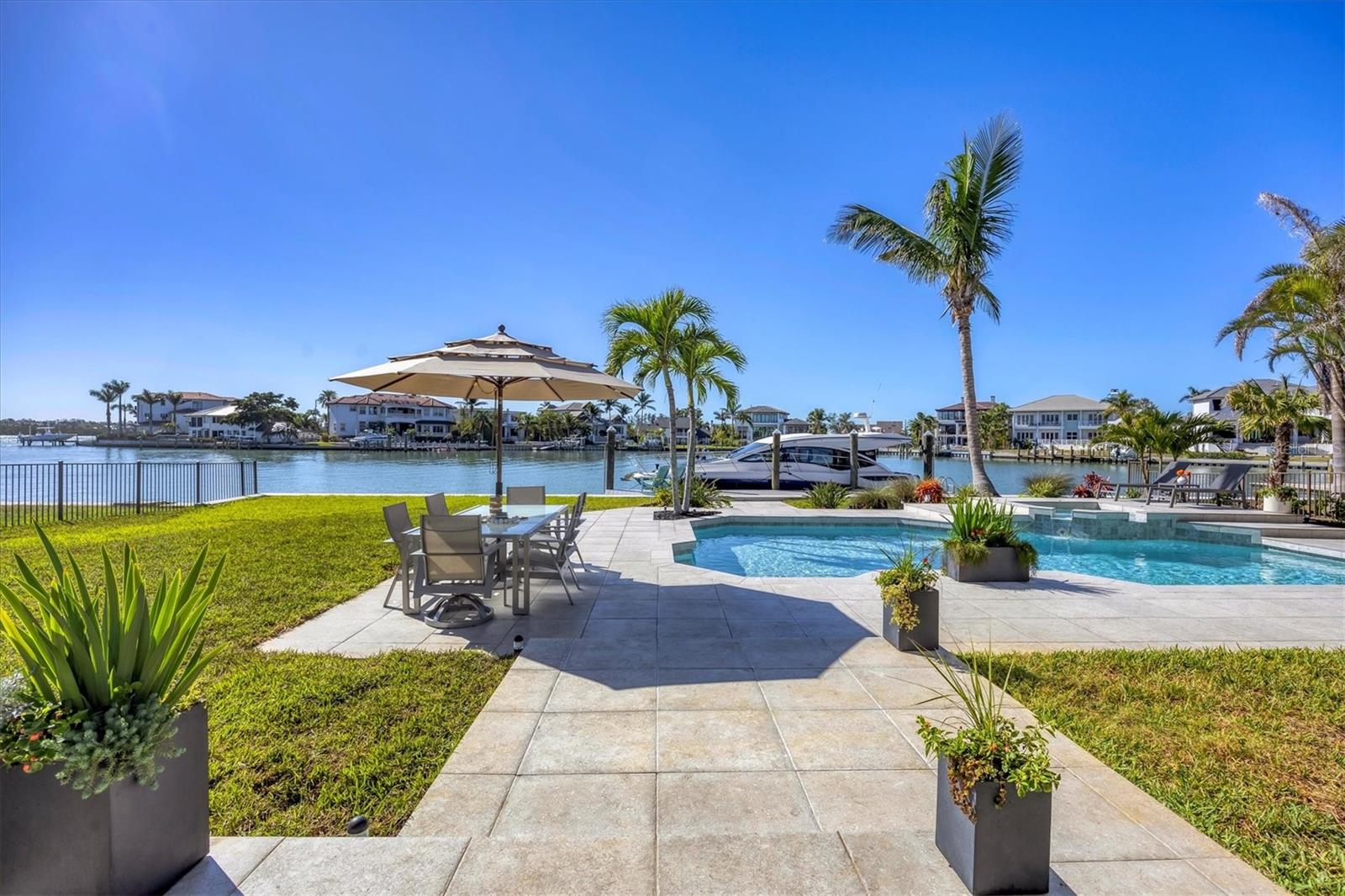 Under contract-accepting backup offers. Look no further. Welcome home to your coastal Siesta Key waterfront retreat, a boater’s dream come true. On the desired north end of Siesta Key, this four-bedroom, four-bath residence spans 4, 622 square feet of meticulously designed living space. Elevated above flood plain, the residence blends architectural craftsmanship with a premier waterfront lifestyle. Directly on the Intracoastal Waterway with no fixed bridges, the property offers swift access to Big Pass and open Gulf waters. The dock presents panoramic bay views and a new 95-foot seawall with a 40-foot slip equipped with power, water and solar lit pilings, ideal for boating or serene sunrise and sunset viewing. The outdoor experience is elevated by a heated saltwater pool and spa, complete with smart controls, waterfall features and porcelain shellstone decking. Inside, a gourmet kitchen centers the home, featuring a Sub-Zero refrigerator, six-burner Dacor gas range with stainless vent hood, Advantium microwave-convection oven, wine refrigerator, wet bar, soft-close cabinetry with glass uppers, decorator granite surfaces, expansive island and illuminated custom cabinetry. The open-concept family room showcases a cathedral ceiling with sweeping bay vistas, creating a striking indoor-outdoor connection. The expansive primary suite features a private waterfront balcony, new carpet, custom walk-in closet and a spa-style en-suite with a deep soaking tub, frameless rain shower, and dual vanities. Two guest bedrooms are on the first floor, including a rear en-suite with a private entrance that also serves as a dedicated pool bath. A bonus room used as a game and fitness space offers flexible potential and can easily be converted into a fourth bedroom. This residence is within the city limits, allowing for potential short-term rental income, making it an attractive opportunity for personal enjoyment and investment. Additional highlights include hurricane-impact windows and doors, Hunter Douglas custom treatments, crown molding, Brazilian cherry wood flooring and refined interior finishes throughout. Professionally landscaped grounds with new sod, an irrigation system and hardscape pathways complete the setting. Minutes from Siesta Key Beach and Village and a short drive to Southside Village and downtown Sarasota, this residence merges waterfront access with design, privacy and location, offering a rare opportunity to own a premier property on Florida’s Gulf Coast. Click on the fly-through video and Matterport walk-through for more images. Live where every day feels like a resort vacation, make it come true!
