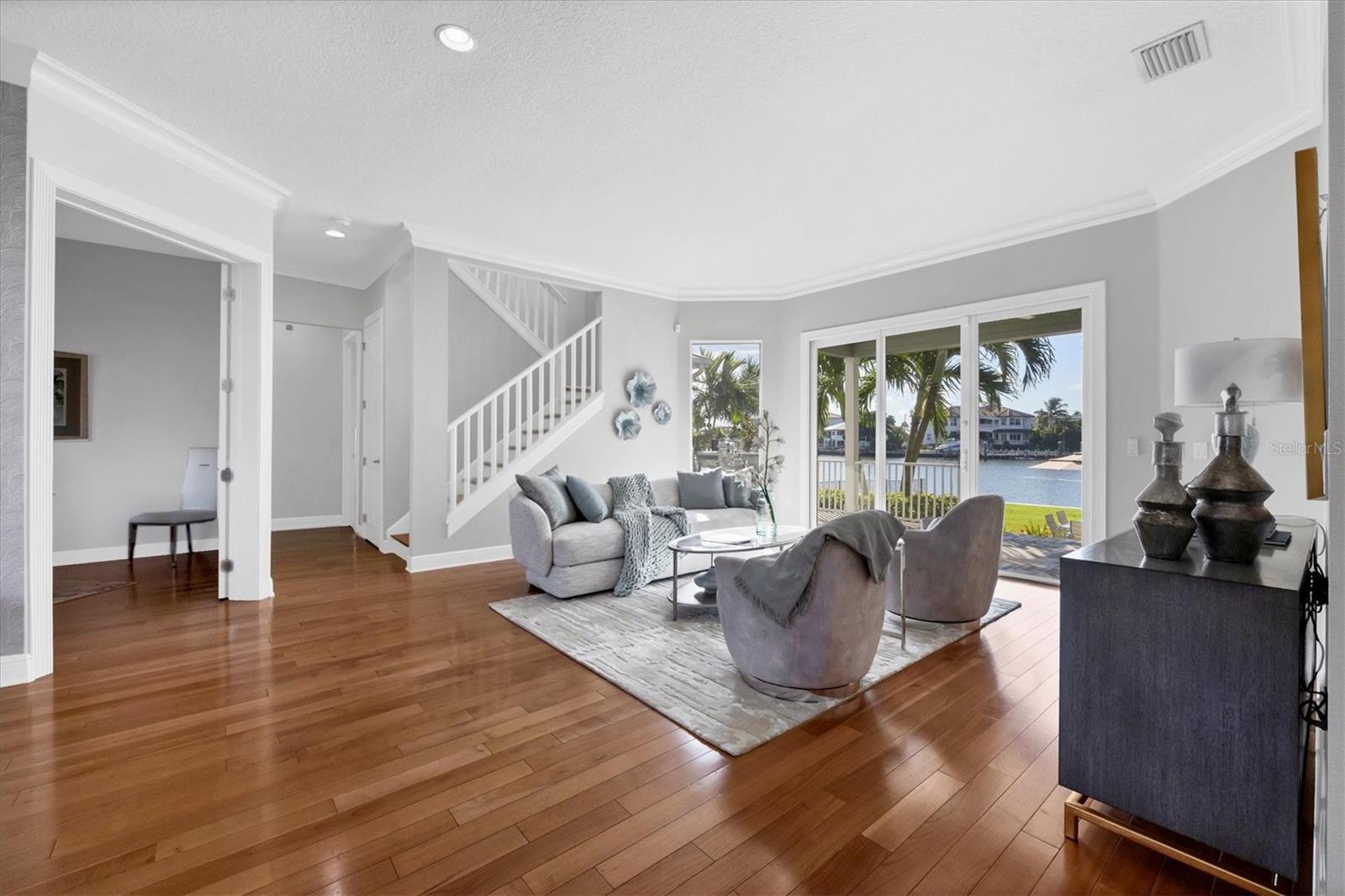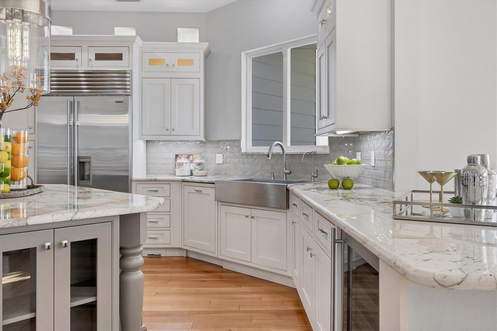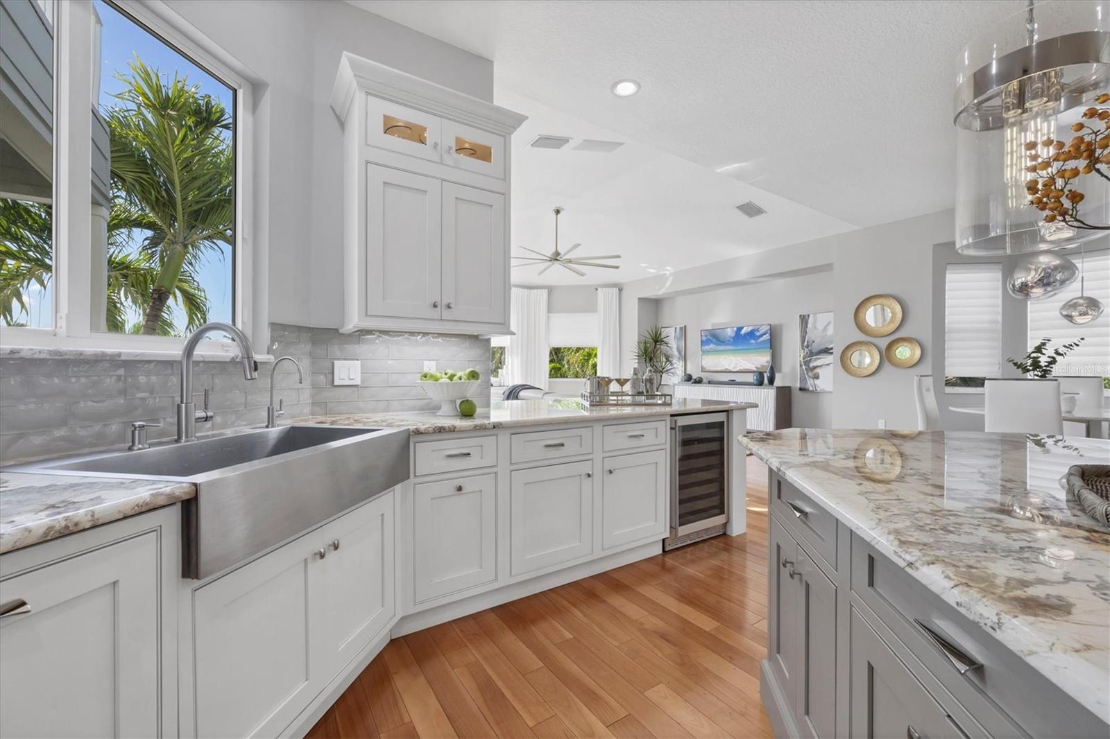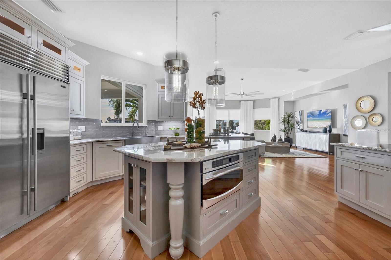 Under contract-accepting backup offers. Look no further. Welcome home to your coastal Siesta Key waterfront retreat, a boater’s dream come true. On the desired north end of Siesta Key, this four-bedroom, four-bath residence spans 4, 622 square feet of meticulously designed living space. Elevated above flood plain, the residence blends architectural craftsmanship with a premier waterfront lifestyle. Directly on the Intracoastal Waterway with no fixed bridges, the property offers swift access to Big Pass and open Gulf waters. The dock presents panoramic bay views and a new 95-foot seawall with a 40-foot slip equipped with power, water and solar lit pilings, ideal for boating or serene sunrise and sunset viewing. The outdoor experience is elevated by a heated saltwater pool and spa, complete with smart controls, waterfall features and porcelain shellstone decking. Inside, a gourmet kitchen centers the home, featuring a Sub-Zero refrigerator, six-burner Dacor gas range with stainless vent hood, Advantium microwave-convection oven, wine refrigerator, wet bar, soft-close cabinetry with glass uppers, decorator granite surfaces, expansive island and illuminated custom cabinetry. The open-concept family room showcases a cathedral ceiling with sweeping bay vistas, creating a striking indoor-outdoor connection. The expansive primary suite features a private waterfront balcony, new carpet, custom walk-in closet and a spa-style en-suite with a deep soaking tub, frameless rain shower, and dual vanities. Two guest bedrooms are on the first floor, including a rear en-suite with a private entrance that also serves as a dedicated pool bath. A bonus room used as a game and fitness space offers flexible potential and can easily be converted into a fourth bedroom. This residence is within the city limits, allowing for potential short-term rental income, making it an attractive opportunity for personal enjoyment and investment. Additional highlights include hurricane-impact windows and doors, Hunter Douglas custom treatments, crown molding, Brazilian cherry wood flooring and refined interior finishes throughout. Professionally landscaped grounds with new sod, an irrigation system and hardscape pathways complete the setting. Minutes from Siesta Key Beach and Village and a short drive to Southside Village and downtown Sarasota, this residence merges waterfront access with design, privacy and location, offering a rare opportunity to own a premier property on Florida’s Gulf Coast. Click on the fly-through video and Matterport walk-through for more images. Live where every day feels like a resort vacation, make it come true!