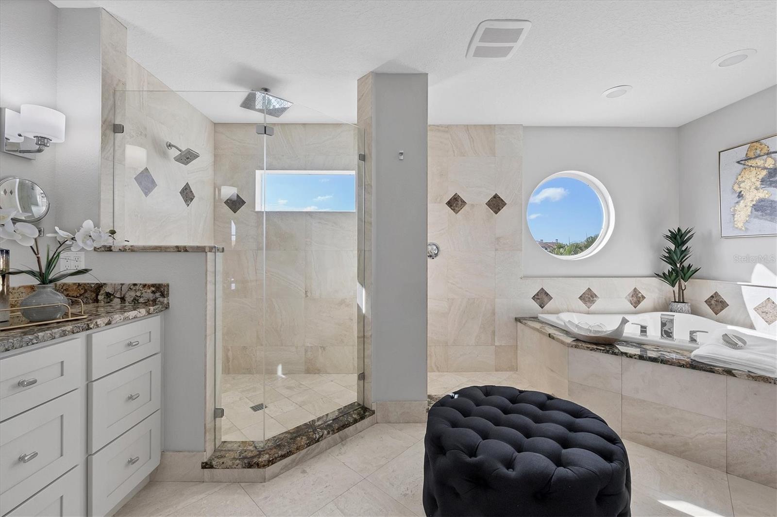 Cathedral Ceiling(s), Ceiling Fans(s), Central Vaccum, Crown Molding, Eat-in Kitchen, High Ceilings, Kitchen/Family Room Combo, Open Floorplan, Solid Wood Cabinets, Split Bedroom, Stone Counters, Thermostat, Walk-In Closet(s), Wet Bar, Window Treatments