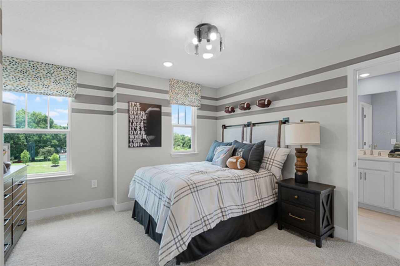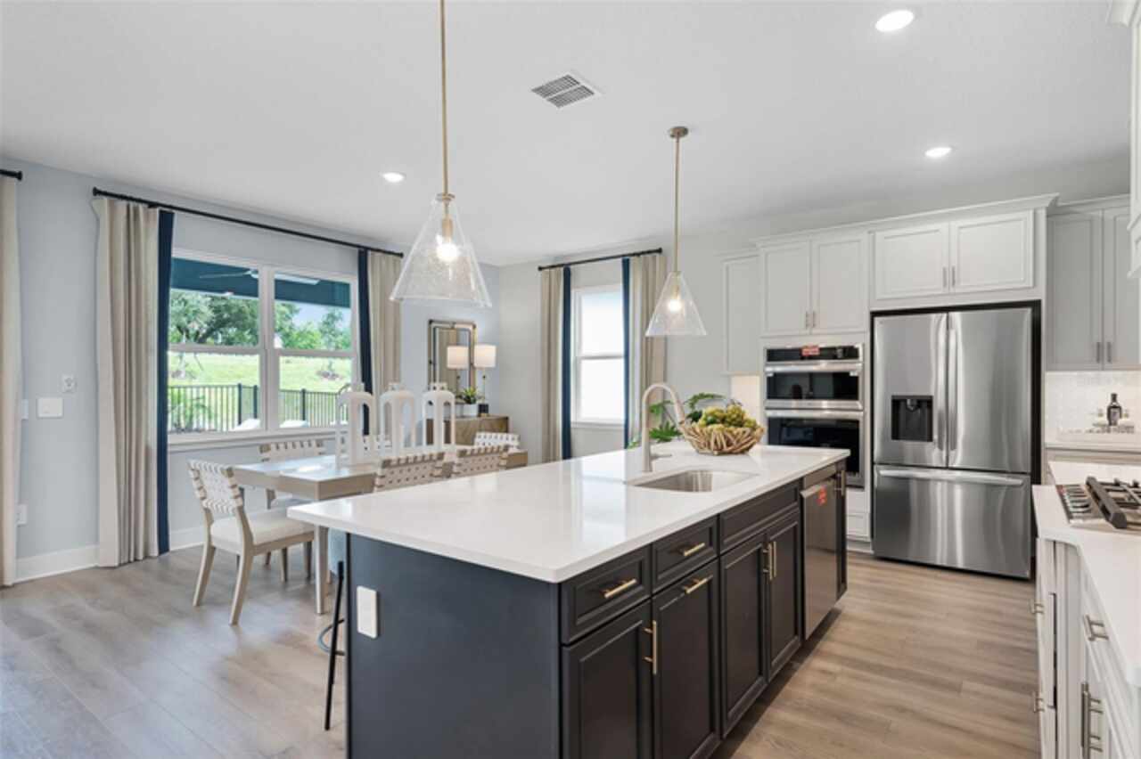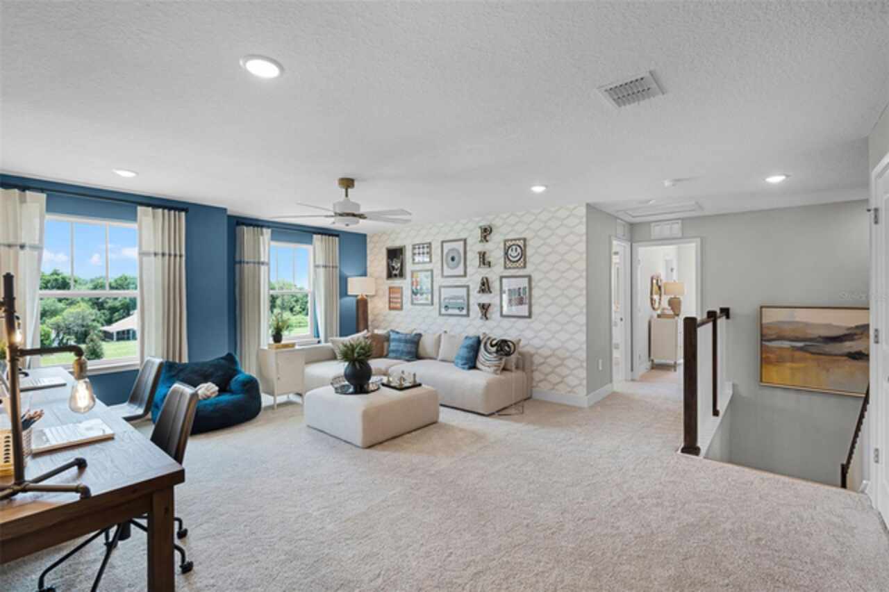 Under Construction. Ready Now! Plus ask about our closing costs savings. NO CDD FEE. Stunning Designer Paxton Plan with 3-Car Garage in Eden Crest! Introducing a thoughtfully upgraded Paxton floor plan by Hartizen Homes, featuring 5 bedrooms, 4 full bathrooms, a spacious loft, and over 3, 000 square feet of elegant living space. This home blends comfort, function, and luxury with its open-concept layout and carefully selected high-end finishes. Enjoy a gourmet kitchen with painted Linen cabinets, navy island accent, Quartz countertops (Ethereal White), stainless steel appliances, and double ovens. The expanded great room includes added LED lighting, perfect for entertaining or relaxing. Retreat to the luxurious owner's suite with upgraded windows, a spa-inspired bath with freestanding tub and walk-in shower, and a large walk-in closet. DISCLAIMER: Photos and/or drawings of homes may show upgraded landscaping, elevations and optional features that may not represent the lowest priced homes in the community. Pricing, Incentives and Promotions are subject to change at anytime. Promotions cannot be combined with any other offer. Ask the Sales and Marketing Representative for details on promotions.