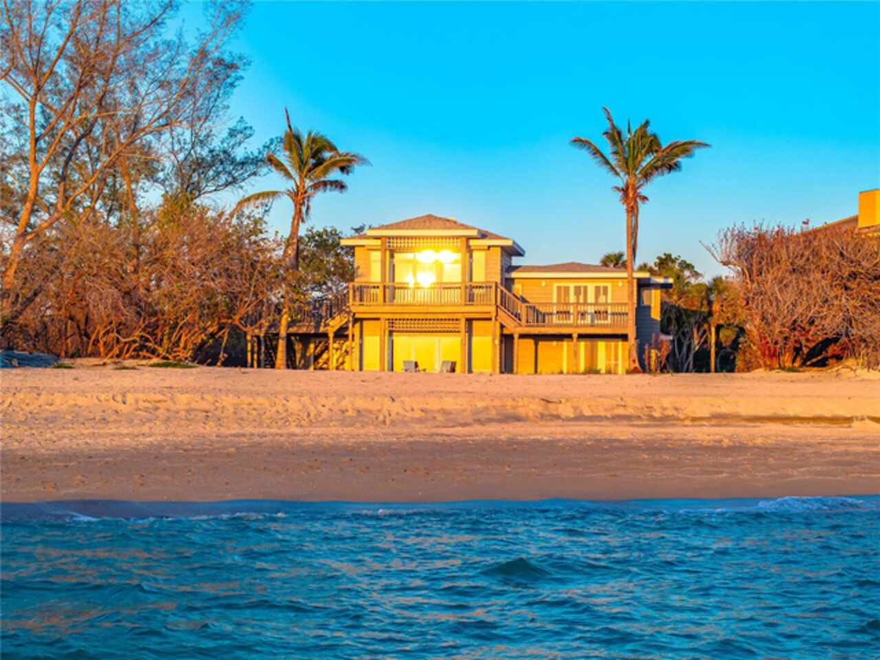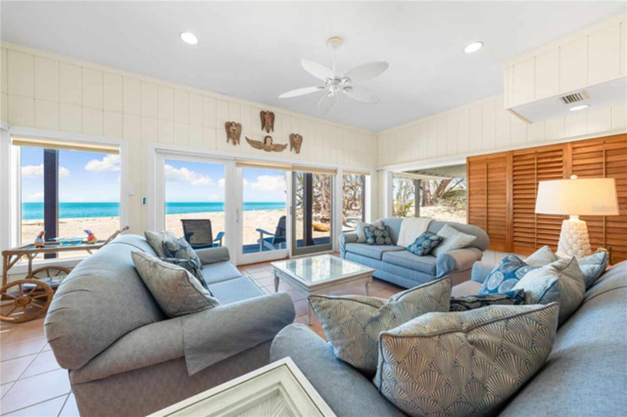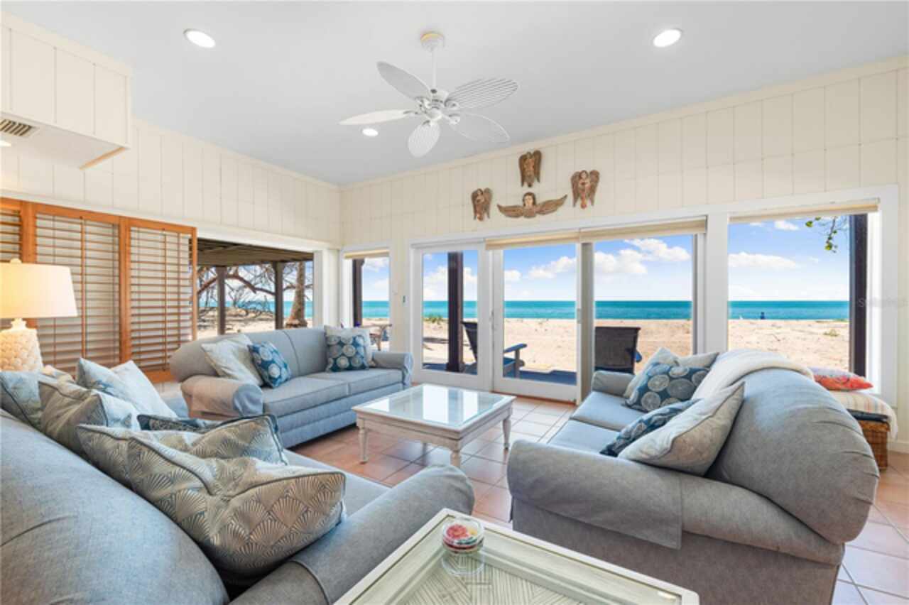 ON THE GULF, ON THE BEACH! One of a kind UPDATED 4-bedroom 4- bath beach/gulf front home directly facing the beautiful gulf waters of world-famous SIESTA KEY with your own 100 feet of PRIVATE BEACH to enjoy. Unrestricted views and access to the beach in your backyard make this one of the most highly desirable locations on Siesta Key. This property is very private and is located on the quiet south end of Siesta Key just north of Turtle Beach and is accessed by a private road. Large windows and sliding glass doors throughout the home allow for breathtaking panoramic beach and gulf views. You will enjoy watching the spectacular sunsets whether inside or outside the home. Open floor plan with a total of 3632 sq. ft. of living area. A total of five large individual private decks are facing the gulf with access from the family room, dining room, owner’s suite second floor, guest bedroom first floor and side deck off second floor, A magnificent second story family room and owner’s suite was added by the current owners. Making life easier there are two owners suites, one on the first floor and one on the second, take your pick. Updated kitchen appliances. Spacious bedrooms all with their own baths. 2-car attached garage. Home includes a private deeded kayak dock and even includes a Kayak for your enjoyment. Property is being sold turnkey furnished. This property is separate and apart from the Heron Lagoon subdivision. Folks, this is a unique opportunity that may not be seen again for a very long time. Visit our virtual tour and make an appointment today!