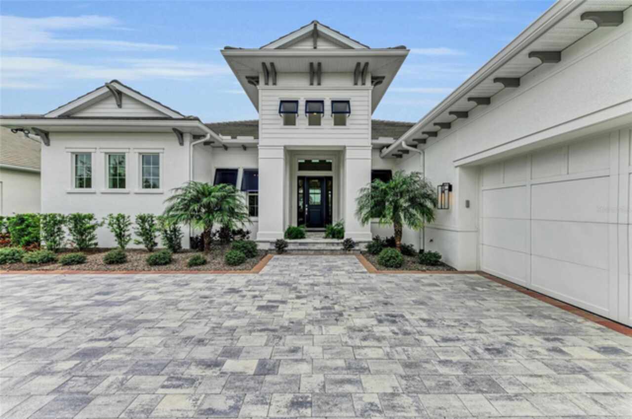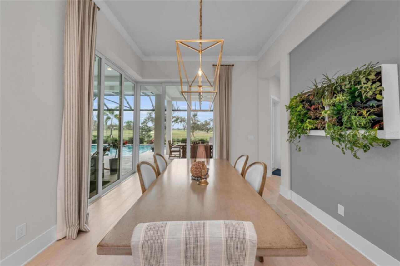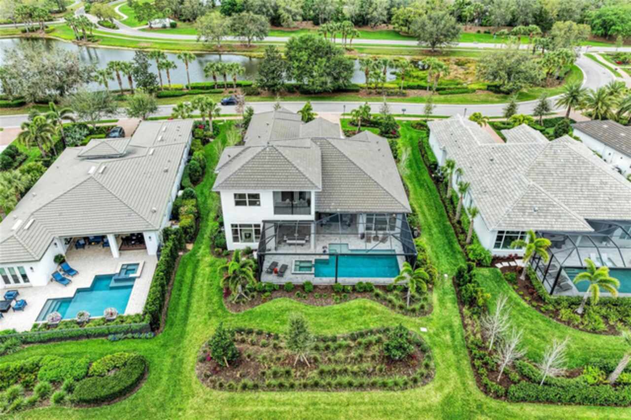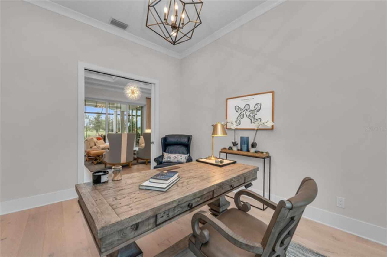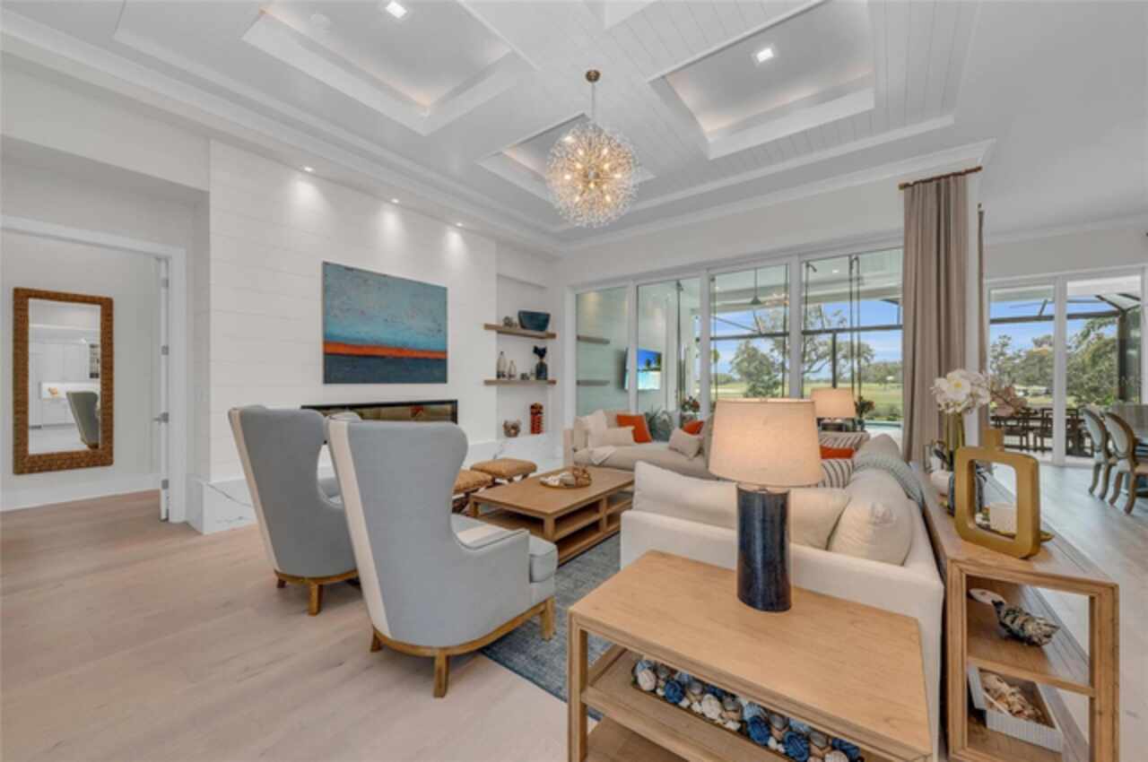 Come home to this magnificent custom coastal contemporary Lee Wetherington residence with sweeping golf course views. Tucked behind the gates of the Founders Club, a stunning neighborhood of only 262 homes nestled amidst nature and one of the region's best golf courses. Built on a premium golf-view site with easy access to the clubhouse, this home offers an idyllic setting and lifestyle. A quiet, tree-lined street leads to a picturesque home that must be experienced to be fully appreciated. Set against the serene backdrop of a rolling fairway studded with ancient oaks and across from a protected preserve, this home provides privacy and tranquility. Inside, glorious soft natural sunlight, a cheerful ambiance, and lovely views are experienced throughout. Tall ceilings are emphasized with beautiful trim detail, and the grand great room flows effortlessly through the 10’ sliding glass doors to the stunning outdoor living. With over 4, 000 square feet of air-conditioned space, you’ll have plenty of room for gathering and privacy. In addition to the 4 bedrooms, you'll find a study, a bonus room, and a loft. The outdoor oasis offers more incredible space with a saltwater heated pool and spa, outdoor kitchen, and panoramic screen. The designer kitchen features quality wood cabinetry with soft close doors, a hidden pantry, Thermador appliances including a natural gas range, furniture-wrapped column refrigerator and freezer, double ovens, a tall wine cooler, and gleaming Cambria quartz countertops. Beautiful designer touches include European white oak floors in main living areas and primary bedroom, a lovely Dimplex 72” linear fireplace built in, classic trim and millwork details, elegant lighting, plantation shutters, remote blinds, and Sonos sound system. The well-appointed owner’s retreat features a spa-inspired bath with floating tub, frameless shower, built-in coffee bar, and double walk-in closets. This green-energy-certified home is quality built and offers peace of mind from the storms. Impact windows and doors. Landscape lighting and lush professional landscaping enhance the home in the day and evening. Optional social and golf memberships. Clubhouse offers gourmet restaurant with fine and casual dining, 24-hour fitness center, social activities, and holiday events. An on-site fitness center offers Pilates and yoga classes, and Har Tru tennis courts are available for residents. Founders Club is 9 miles from downtown Sarasota with easy access to cultural venues and world-class beaches. Enjoy the best of Sarasota living with convenience to various grocers, medical facilities, farmers markets, shops, polo fields, and many restaurants. This immaculate home is ideal for those who desire new construction without the wait!