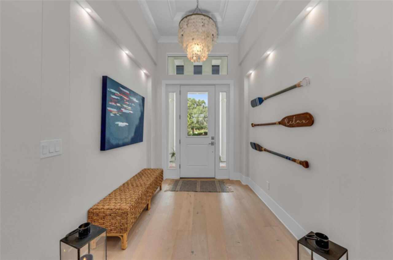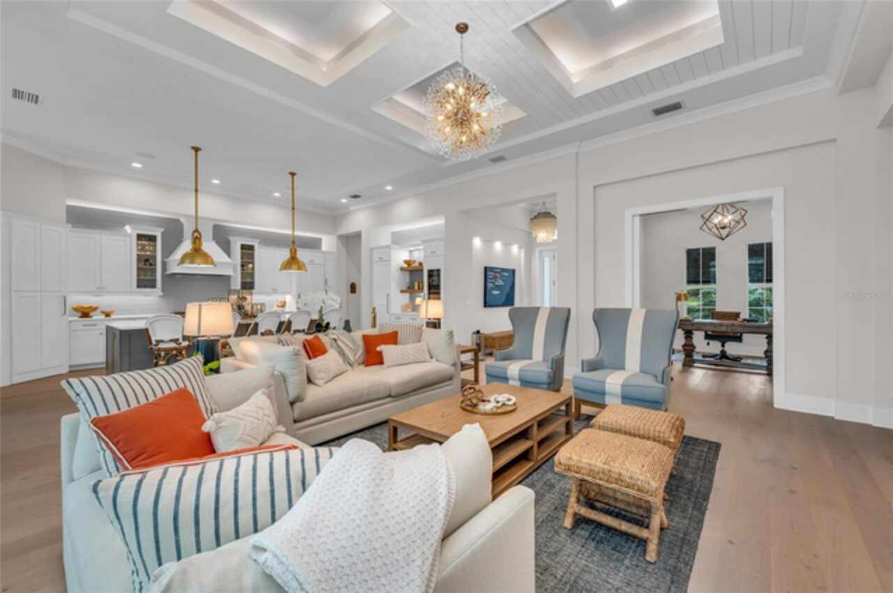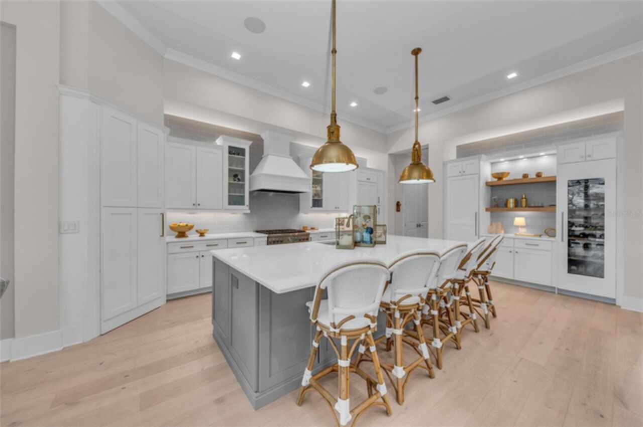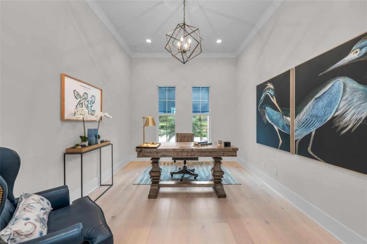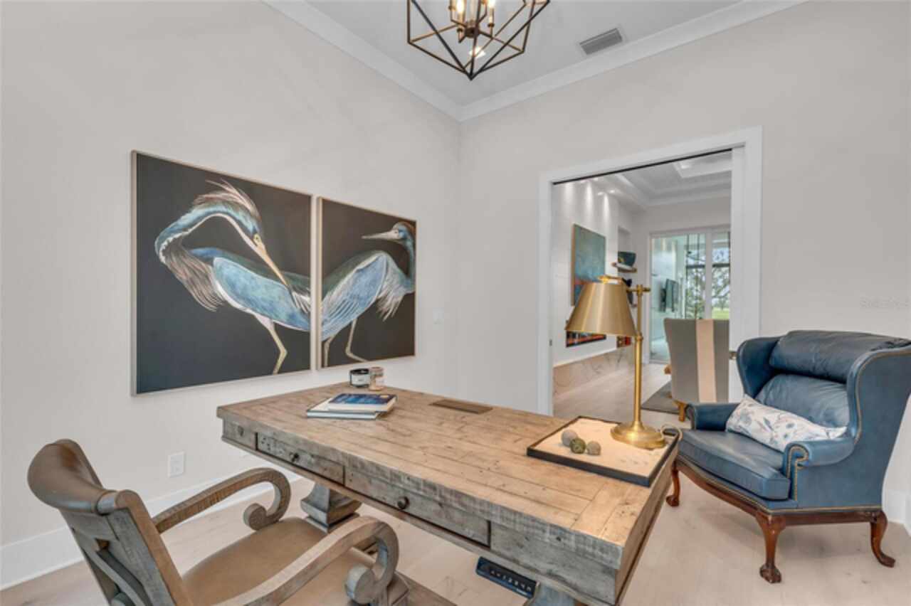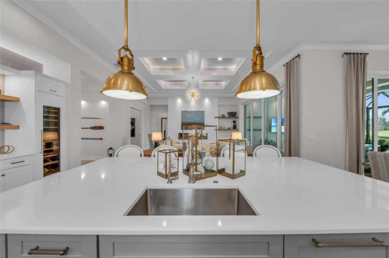 Come home to this magnificent custom coastal contemporary Lee Wetherington residence with sweeping golf course views. Tucked behind the gates of the Founders Club, a stunning neighborhood of only 262 homes nestled amidst nature and one of the region's best golf courses. Built on a premium golf-view site with easy access to the clubhouse, this home offers an idyllic setting and lifestyle. A quiet, tree-lined street leads to a picturesque home that must be experienced to be fully appreciated. Set against the serene backdrop of a rolling fairway studded with ancient oaks and across from a protected preserve, this home provides privacy and tranquility. Inside, glorious soft natural sunlight, a cheerful ambiance, and lovely views are experienced throughout. Tall ceilings are emphasized with beautiful trim detail, and the grand great room flows effortlessly through the 10’ sliding glass doors to the stunning outdoor living. With over 4, 000 square feet of air-conditioned space, you’ll have plenty of room for gathering and privacy. In addition to the 4 bedrooms, you'll find a study, a bonus room, and a loft. The outdoor oasis offers more incredible space with a saltwater heated pool and spa, outdoor kitchen, and panoramic screen. The designer kitchen features quality wood cabinetry with soft close doors, a hidden pantry, Thermador appliances including a natural gas range, furniture-wrapped column refrigerator and freezer, double ovens, a tall wine cooler, and gleaming Cambria quartz countertops. Beautiful designer touches include European white oak floors in main living areas and primary bedroom, a lovely Dimplex 72” linear fireplace built in, classic trim and millwork details, elegant lighting, plantation shutters, remote blinds, and Sonos sound system. The well-appointed owner’s retreat features a spa-inspired bath with floating tub, frameless shower, built-in coffee bar, and double walk-in closets. This green-energy-certified home is quality built and offers peace of mind from the storms. Impact windows and doors. Landscape lighting and lush professional landscaping enhance the home in the day and evening. Optional social and golf memberships. Clubhouse offers gourmet restaurant with fine and casual dining, 24-hour fitness center, social activities, and holiday events. An on-site fitness center offers Pilates and yoga classes, and Har Tru tennis courts are available for residents. Founders Club is 9 miles from downtown Sarasota with easy access to cultural venues and world-class beaches. Enjoy the best of Sarasota living with convenience to various grocers, medical facilities, farmers markets, shops, polo fields, and many restaurants. This immaculate home is ideal for those who desire new construction without the wait!