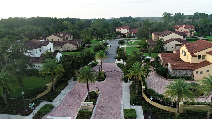 The Homes are a French Country or Mediterranean style. The homes for sale are all over $1,000,000.It is a gated community with only 6 homes 2 of which have canal access. The area is a very quiet area. As you drive there you will see some of the million dollar mansions that Dr. Phillips is famous for.