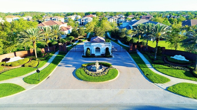 Bellaria is not a very large community, it has only 64 beautiful homes inside. The community is guarded and its’ only entrance is located on W Lake Butler Road just east from Winter Garden Vineland Road. You will not miss the entrance. It is large and easily recognized. Not only because of the community’s walls but also the guardhouse and the large community signs proclaiming the name.