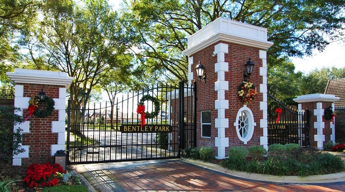 Bentley Park is in the western section with no signs alerting to its presence. Just an iron gate as seen above that provides just peek through the iron bars of the magnificent lakefront homes and red brick street in this community.