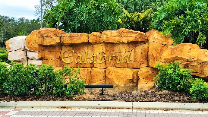 Calabria is located on the west side of Westside Blvd. As you drive by the community you may not realize that the community is also on the eastern shore of Old Lake Davenport. Old Lake Davenport is about 1 mile from north to south.