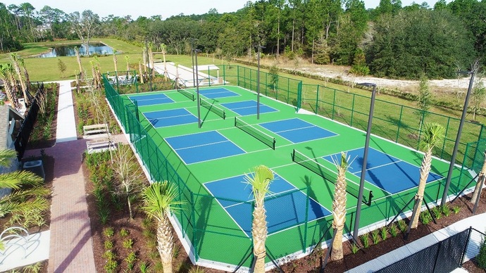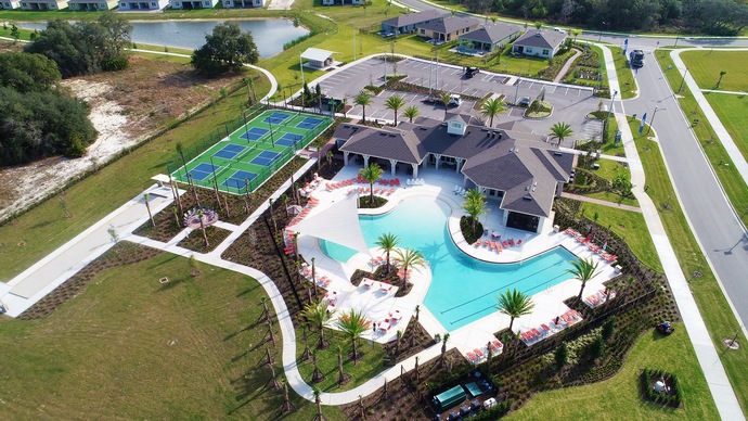 Palms at Serenoa is a tranquil and active 55+ gated community offering a range of amenities including pickleball courts, fitness center, clubhouse, and community pool, catering to the lifestyle needs of active mature adults.