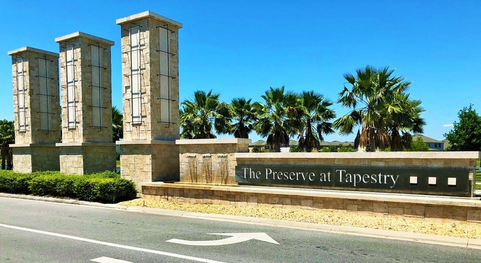 The Preserve at Tapestry is a large community of modern homes in Kissimmee FL. The Preserve at Tapestry is comprised of 327 homes and very nice amenities. The grand entrance is a sign of things to come.