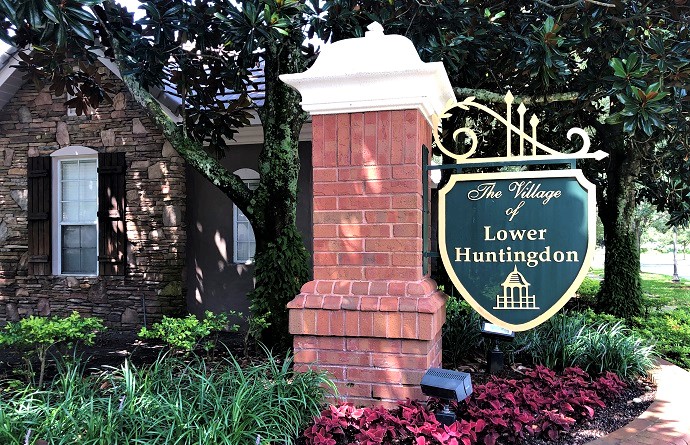 The Village of Lower Huntingdon is located on South Hampshire Court but also includes the homes on the east side of Tibet Butler Drive between this street and Keenes Pointe Drive. That totals 32 homes making this a fairly small village. However, all of these homes could be called golf front or golf view homes. The 6th, 7th and 8th holes are the ones primarily in view.
