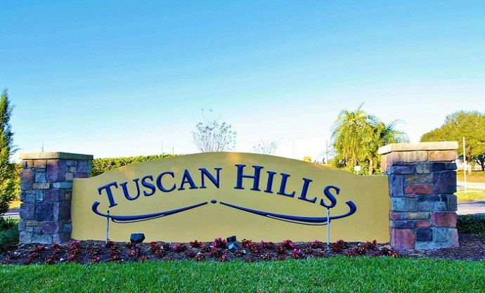 Tuscan Hills Davenport FL is a resort style community of approximately 160 homes. Tuscan Hills is an 18-minute drive to Disney’s Magic Kingdom. There is one main entrance about one hundred yards east of SR-27. The entrance is on Florence Villa Grove Road on its’ south side. The entrance sign is low and small but you will see the clubhouse.